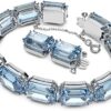 A world of wonder awaits: This bracelet defines everyday beauty and grace, featuring octagon-cut crystals in a light sapphire blue hue on a rhodium—finish band; for stylish day and night looks