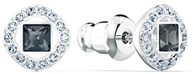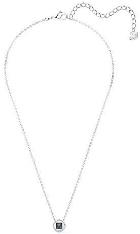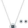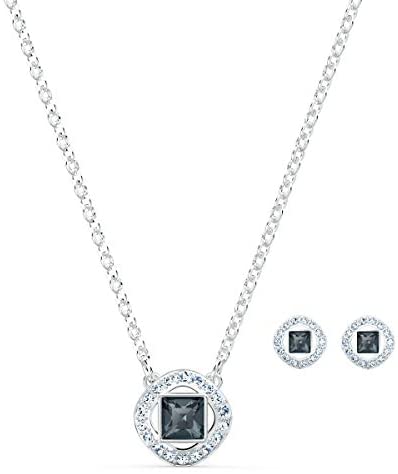 Items delivered: 1 x Swarovski Angelic Square rhodium plated jewelry set, with dark grey and white crystals, necklace with a 15 inch adjustable chain and stud earrings, with Swarovski jewelry box