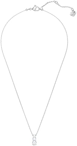 Items delivered: 1 x Swarovski Attract Trilogy Collection round crystal and rhodium plated pendant, 14 7/8 inch thin rhodium plated chain, 1/4 x 3/8 inch crystal pendant, with Swarovski necklace box