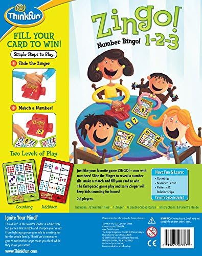 What You Get – Zingo 1-2-3 Is One Of Thinkfun’S Enormously Popular Zingo Products, Containing A Fun Zinger, 6 Double Sided Cards And 72 Double Sided Tiles.