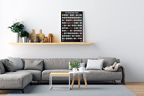 This is the newest version of our Top 100 Board Games Scratch Poster with the list of games as of January 2022. ////// What’s included? – 4 pins to put it on the wall – 1 cloth to wipe off the residue – 1 acrylic scratcher ////// Top 100 Board Games scratch poster is a perfect wall decor for any board game enthusiast. Track your progress by scratching off the games that you played. Get inspired on what to play next and prepare yourself for the perfect game night! Play them all, scratch them off! The list includes best boardgames of all time, such as strategy games (Scythe, Pandemic Legacy, Terraforming Mars), solo games (Gloomhaven, Mage Knight, Robinson Crusoe), cooperative games (Spirit Island, Mansions of Madness, Eldritch Horror), and card games (Arkham Horror, Dominion, Race for the Galaxy)