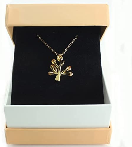 Champagne Topaz stones on women necklace are recessed on each of the eight leaves. Topaz is a hard-wearing, vibrant stone and displays characteristic streaks of color across the stone. The tree of life necklace stone is cut round to show off the stunning shades of perfection