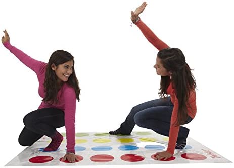 It’s the Twister game, the classic game that ties players up in knots! This action-packed group game is fun for parties or a game night with the family. See where the spinner lands and make a move. Left hand red, piece of cake! Right hand yellow, no problemo! Hilarity ensues as players twist, turn, tangle — and struggle to keep their hands and feet glued to the mat. Right foot blue … uh oh, this is getting tough! Who can do it? Once a player topples over, or their knee or elbow hits the mat, they’re out. The last player standing wins! For ages 6 and up, the Classic Twister game is a fun thing to do while staying at home, and it’s a great outdoor game for kids to play with family and friends. Are you ready to be the next Twister game champ? Hasbro Gaming and all related trademarks and logos are trademarks of Hasbro, Inc.
