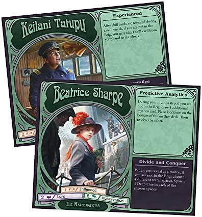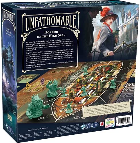 The steamship Atlantica makes way to Boston, but dark shadows trail the ship, staying just out of sight beneath the waves. The ship’s passengers seem unnaturally fixated, staring out to sea with a silent, desperate longing. The investigators’ dreams are plagued by eerie underwater nightmares. And now, a passenger has been murdered. Suspicion, hidden loyalties, and devious strategy rule the day! Unfathomable puts the players in command of a steamship, but not every player can be trusted. While monstrous Deep Ones stream forth from the crushing ocean depths, any player could secretly be a nefarious cultist or a horrifying hybrid Deep One. The investigators must take care not to turn their backs on anyone—it will take all their cunning to save their ship from a watery grave. Battle swarming Deep Ones, uncover the traitors, and steer the Atlantica safely home in Unfathomable!