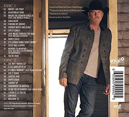 Trace Adkins leans into his classic country baritone and ropes in unexpected collaborators to create an album that reflects the varied tastes of contemporary country music fans. The Way I Wanna Go celebrates Trace’s 25 years in country music with a sweeping 25-song collection that includes songs with Blake Shelton, Snoop Dogg, Melissa Etheridge, Keb’ Mo’ with Stevie Wonder on harmonica and Luke Bryan with Pitbull, both featured on the single “Where The Country Girls At.” The song is a genre-jumping, boot-stomping banger that asks what every cowboy on the dance floor wants to know. Other songs include the tongue-in-cheek Blake Shelton collaboration “If I Was a Woman” and the bluesy West Tennessee stride “Memory to Memphis” with Keb’ Mo’ and Stevie Wonder on harmonica. On his own, Trace bear hugs the country tenets on which he built his career – flirty up-tempos (“Cadillac’n”), sentimental odes (“The Way I Wanna Go”) and heartache songs (“I Should Let You Go” and “Heartbreak Song”). The result is a cohesive package that both hits country fans in the chest and piques the interest of the playlist crowd.