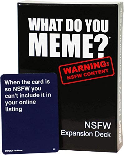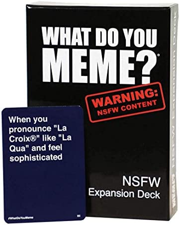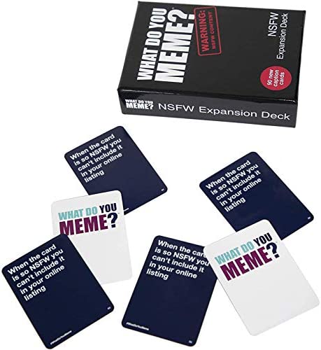 This Expansion pack introduces 90 brand new NSFW (not safe for work) caption cards to be added to the What Do You Meme? Core game. As you might guess from the title, this pack contains our newest, definitely not safe for work and most shocking caption cards yet — aka the good stuff. This deck requires What Do You Meme? Core game to play.