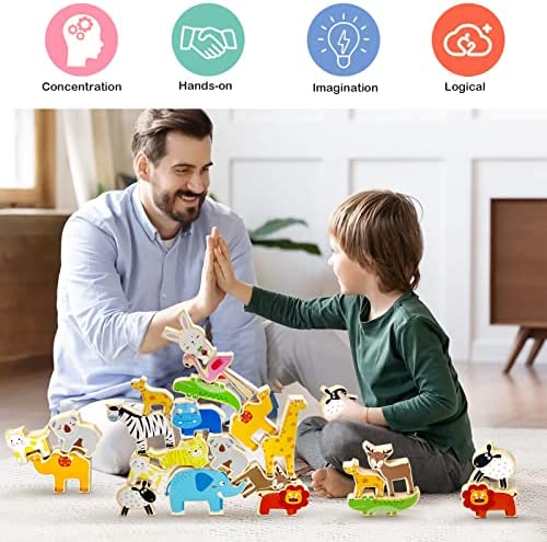 【Fun and Educational】 Stacking is so much fun for little ones! Stacking toys are another great way for your child to know different animals and shapes. The set is perfect for stacking up and knocking back down, the large animal blocks can also be used as manipulatives or imaginative play.