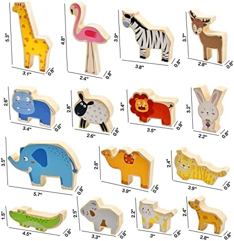 【Wooden Animals Stacking Toy】 This adorable set features 15 big wooden animal blocks. Children will fall in love with the giraffe, lion, tiger, elephant, zebra, koala, rhino, flamingo, rabbit and more.