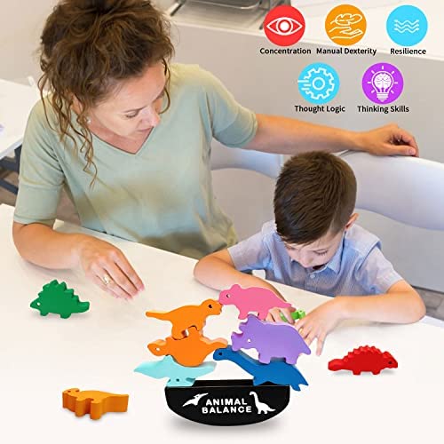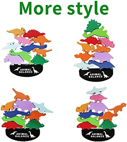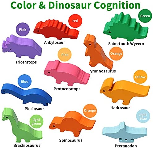 Fun Animal Stacking Toy: Our wooden dinosaur stacking toy contains 10 different dinosaur species, and a boat-shaped base. The dinosaur shape is realistic and cute, popular with children. An early educational toy for 2 3 4 5 year old toddlers