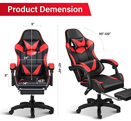 [Comfortable Seat] Thick and high-density sponge cushion provides sufficient seat depth to reduce stress and pressure on your hips. The lumbar cushion and headrest pillow will protect and relax your spinal and neck. Easy to assemble.