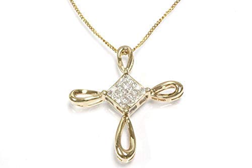 0.35 ct tw Natural Princess Cut Diamond Solid 14k Yellow Gold Religious Cross Pendant Necklace for Women or Men 27 mm – Length 15 to 20 Inches available