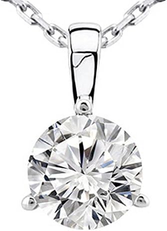 0.5 Carat 14K White Gold Round Diamond 3 Prong Solitaire Pendant Necklace J Color I2 Clarity
