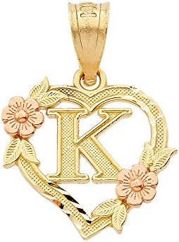 10k Two-Tone Initial Heart Pendant for Women in Yellow and Rose Gold