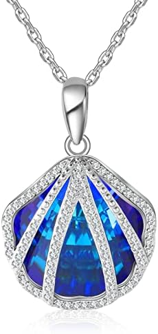 Yumato Personalized Seashell Crystal Necklace,Custom Text Sterling Silver Women’ S Pendant, Blue Crystal Emotional Relief Necklace ,Mother’S Day Anniversary Valentine’S Jewelry Gift For Wife Girlfriend Daughter
