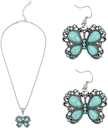 Yowivon Western Jewelry for Women, Bohemian Turquoise Necklace, Vintage Earrings and Bracelet,Drop Dangle Earrings Summer Jewelry Layered Necklaces Layered Bracelets